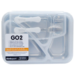 GO2 Container viene en azul, naranja, blanco y rosado! Tenedor y cuchara asegurados. Sin perder utensilios. Los compartimentos grandes facilitan la colocación de alimentos para comidas más ligeras o más pesadas. Solo llene ... ¡Y YA! Moderno y altamente funcional. Desde el momento en que sostienes el contenedor GO2, comprenderás que es un producto muy resistente y bien diseñado. No hay diseño de patín, porque nadie quiere sus albóndigas en el piso. El contenedor GO2 es ideal para ir a la escuela, trabajar, viajar, acampar o alrededor de la casa. Patente pendiente.