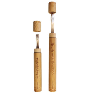 Mantenga su cepillo de dientes seguro y limpio con nuestro estuche de viaje de bambú.