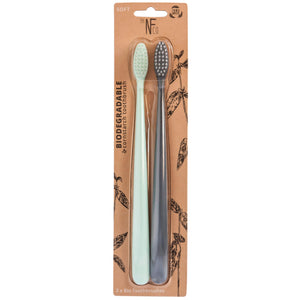 El NFco Bio Toothbrush es biodegradable junto con su empaque. El mango está hecho de almidón de maíz no transgénico con cerdas de nailon que no contienen BPA.