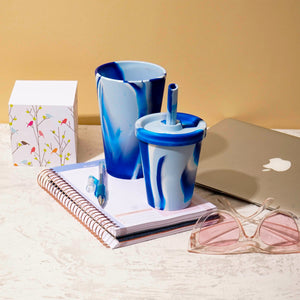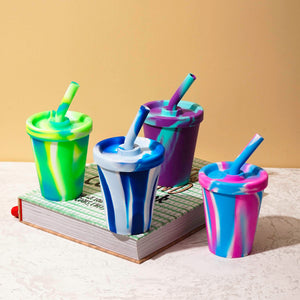Nuestros vasos Tie Die con tapa y bombilla silicona de 280 ml son una alternativa resistente pero ligera a las tazas de agua ordinaria.