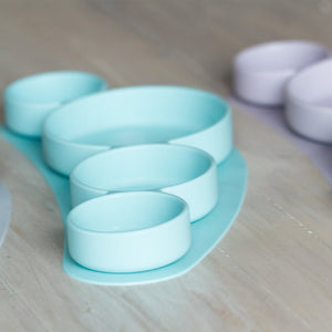 Los platos Mix mat vienen en diferentes colores y cuentan con 4 compartimentos de diferentes tamaños para ir promoviendo el desarrollo de la motricidad fina y la autonomía al comer.