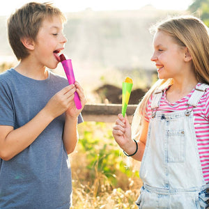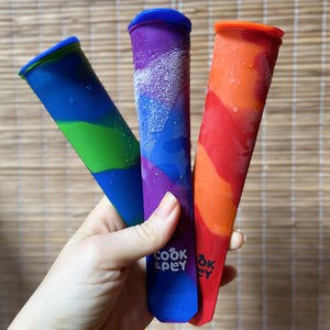 Moldes de siliconaPush Up Ice con tapa para hacer helados caseros! Divertidos colores para combinar. Permite hacer helados saludables y útil para llevar pequeños snacks a todas partes. Su forma y flexibilidad promueve la alimentación autónoma de los niños con menos desastres.