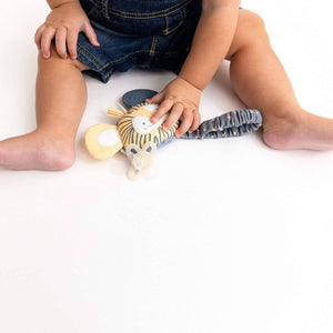 Compacto e innovador, este adorable juguete para la dentición está repleto de características y es una gran adición a cualquier bolso cambiador. Múltiples características sensoriales incluyen una variedad de texturas, cintas / taggies suaves, una divertida oreja arrugada y un sonajero para mantener a su bebé estimulado y entretenido.