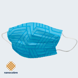 Mascarillas de tela TNT (80gr) con nanopartículas de cobre de 3 pliegues. Son completamente lavables, resistentes, reutilizables y de uso prolongado ya que no se humedecen.