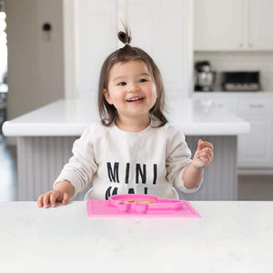 Al igual que todos los productos de ezpz, el plato Peppa Pig es un tazón individual + todo en uno que aspira a la mesa. La alfombrilla está hecha de 100% de silicona de grado alimentario que es libre de BPA, BPS, PVC, látex y ftalato.