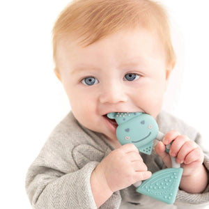 El mordedor tiene muchas texturas diferentes y cada parte ofrece una masticación satisfactoria para tu pequeño. También cuenta con nuestro exclusivo mordedor triangular, con nuestro innovador diseño con hoyuelos para masajear las encías y ayudar a que surjan nuevos dientes. Se puede usar un cepillo de dientes como cerdas en el reverso para aplicar gel de dentición.