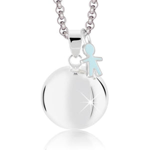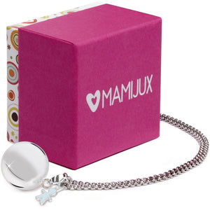 Colgante con forma de niño en un lado plateado y en el otro grabado con el logotipo M'AMI®, en cobre con galvanoplastia plateada.